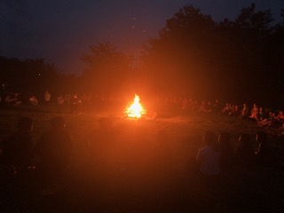 厳かな火の神や火の精の登場と、点火の後は、ゲームや歌、ダンスなどで盛り上がりました。