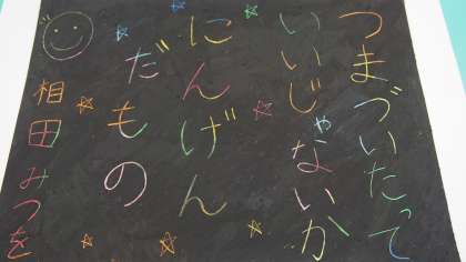 誰だって,生きていればうまくいく時・いかない時があります。先生だって今までに,失敗したこと・うまくいかなかったことなんて山ほどあります。その後,どういう風に前を向いて過ごすかが大切ですよね。だから,つまづいたっていいじゃないか!落ち込んだ時に勇気をもらえる名言です。みんなも,今後つまづくことを恐れずに,生きていってほしいなと思います。