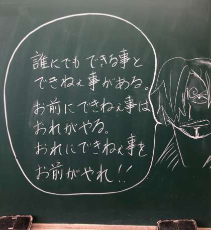 O先生:誰にでもできる事とできねえ事がある。お前にできねえ事はおれがやる。おれにできねえ事はお前がやれ!
