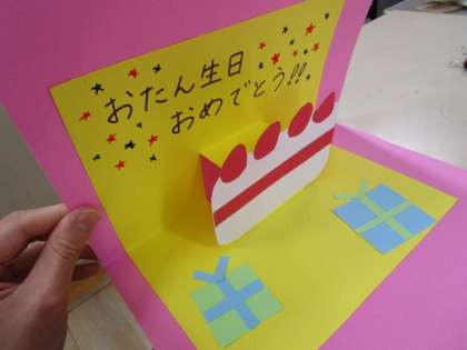先生は友だちにあげるために「おたん生日カード」を