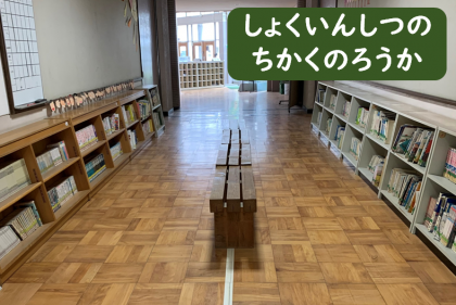 しょくいんしつの ちかくの ろうかにも, ほんが あります。