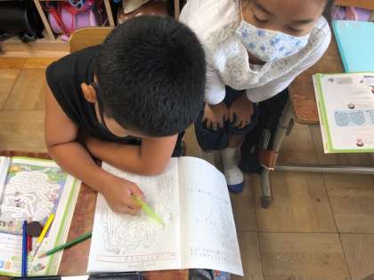 作り終えた後は友だちに挑戦してもらいました。「〇〇さんのむずかしい〜!」と苦戦しながらも,嬉しそうに取り組んでいました。