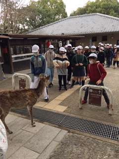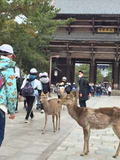 鹿のお出迎えにきゃ〜〜!と悲鳴が…