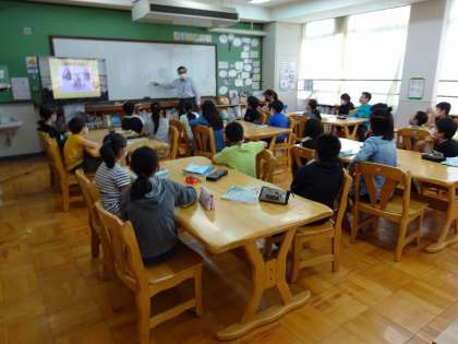 もう6年生なので図書館の使い方というよりは,地域のさまざまな施設を紹介していただきました。子どもたちは,とても身近にある京都市中央図書館の蔵書数が28万冊と知り,おどろいていました。