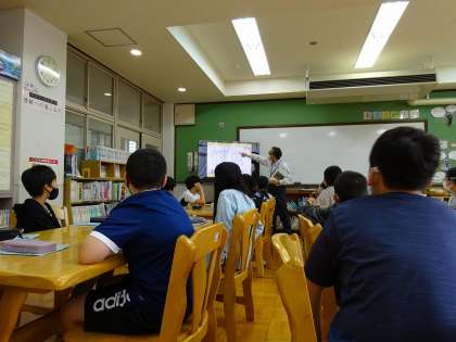 学校司書の花山先生にお世話になり,図書館オリエンテーションを行いました。
