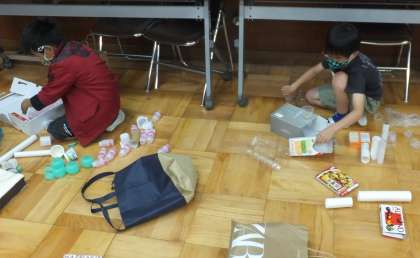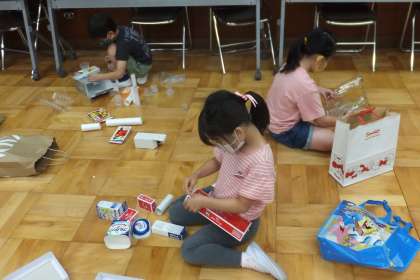 積んだり,ドミノのように並べたり,はじいたりして遊びました。まずは色々試して,なにが楽しいかを見つけたあと,おもちゃを作る予定です。