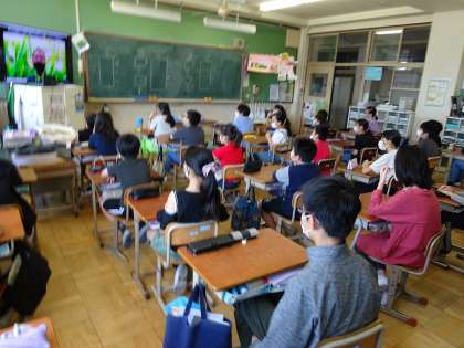 本当なら運動場で行う予定でしたが,密をさけるという点からZOOMでの朝会という形になりました。校長先生からは,学校教育目標の話をしていただきました。改めて自分たちが6年生としてどんなことを目標にしていくのかを明確にすることができました。