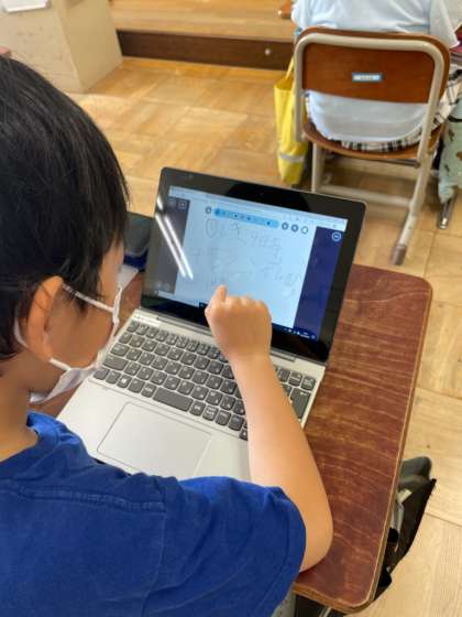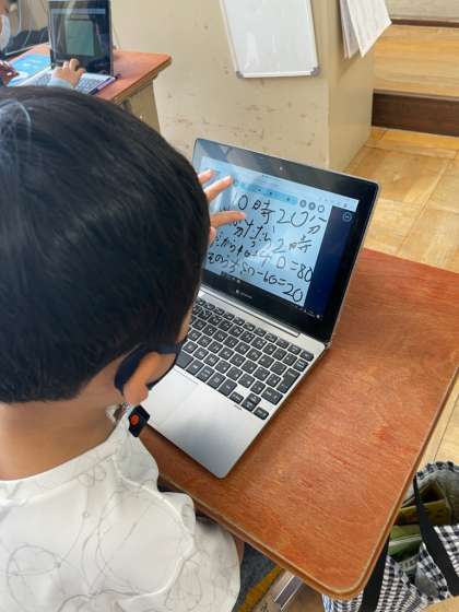 時間の求め方を整理しています。自分の考え方をみんなに説明するために工夫しています。