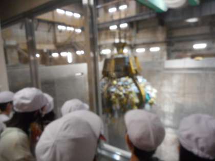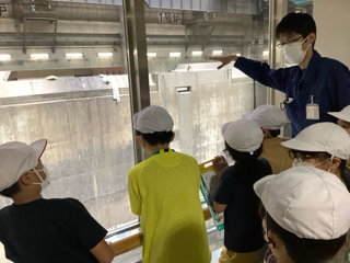 初めて見るものに興味津々の子どもたち。「クレーンはどうやって動かしているんですか。」「このゴミはどこに行くんですか。」など積極的に質問していました。