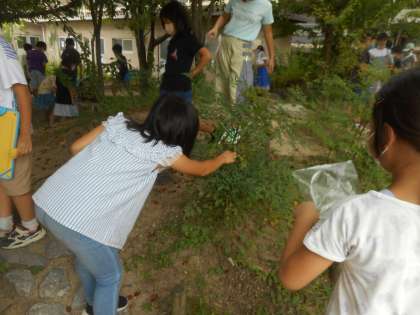 図画工作科「身近な自然の形・色」の学習で、いろいろな形や色の葉を集めました。細長い形の葉もあれば、黄色になっている葉などたくさんの葉を見つけることができました。