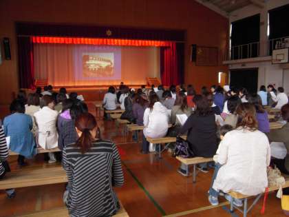学級懇談会の後,体育館で修学旅行説明会を行いました。