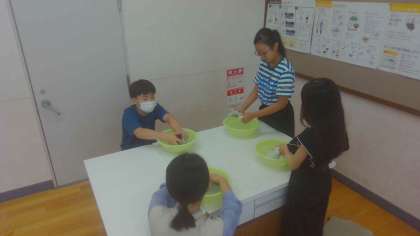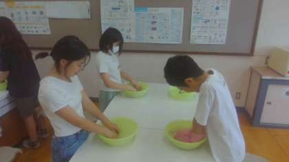 家庭科「夏をすずしくさわやかに」の学習で、手洗い洗濯をしました。初めて手洗いで洗濯した子が多かったので、いい経験になりました。