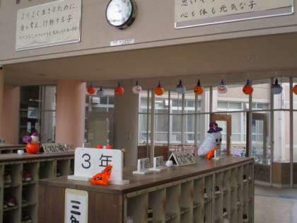 PTA役員の方々が、正面玄関の飾りつけをしてくださいました。一気にハロウィンの楽しい雰囲気になりました。玄関に入ると明るい気持ちになりますね。