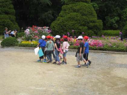 1年生と2年生で京都府立植物園へ遠足に行きました。植物園ではグループで「すざくたんけんたい」として,植物園の中でオリエンテーリングをしました。クイズを解いたり写真を撮ってもらったり,チェックポイントでのお題をクリアしてまわりました。回っている途中,「お花がきれいやなぁ」「いろんな色があるなぁ」「トンボもとんでる!」など植物園を楽しんでいるつぶやきも聞こえてきました。