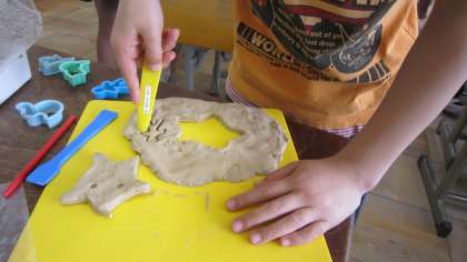 木曜日の図工では,持ってきた型を使って粘土をくり抜き,立体的な作品を作りました。色々な型の形を組み合わせて,とても楽しい作品に仕上がりました。