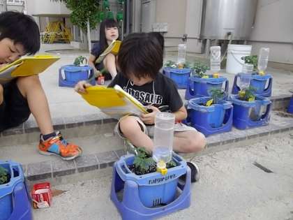 ミニトマトを観察しました。すくすくと大きくなってきたミニトマトはくきも太くなり,葉もたくさんつけだしました。まだまだ成長するミニトマトです。毎日の観察がとても楽しみですね!