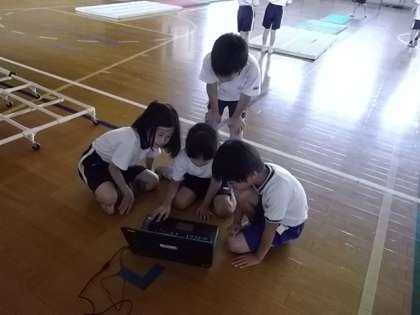 また,PCを使って,それぞれの技のできばえを見て,確かめています。残り3時間ほどですが,たくさん活動してうまくなってほしいと思います。