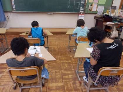 正しい鉛筆の持ち方,姿勢をもう一度確認しました。普段の持ち方に慣れていて,正しい持ち方に,「書きにくい〜!」という声もあがっていました。しかし,正しい持ち方,姿勢をしっかり意識して文字の練習をすることができました。