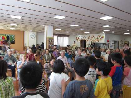 そよ風さんに着くと,緊張した様子でしたが,お年寄りの笑顔に子どもたちもにっこりと返していました。