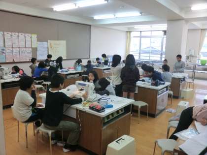 家庭科では「ぬって作ろう楽しい生活」の学習を進めています。
