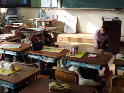 教室で避難の仕方を,安全ノートや先生のお話などで学習した
