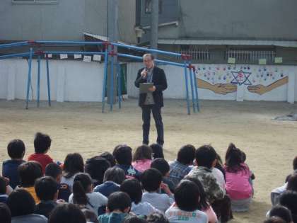 避難後のお話では,教頭先生から当時の様子をお話していた