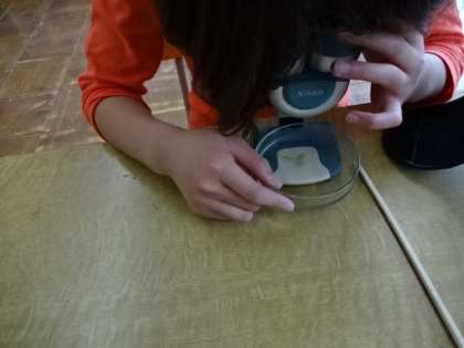 たまごを産んでいるのを見つけてからは,顕微鏡を使って観察をしていました。