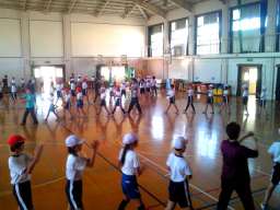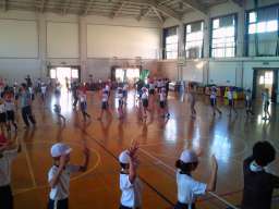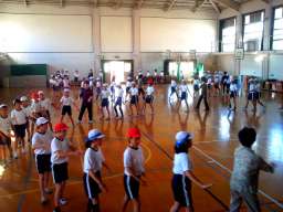 運動会で恒例になりましたもっと京都ですが,今年も5年生が踊ります。女性会の皆様に教えていただきながら,今日で2回目の練習会です。最初,どれくらい覚えているのか,確かめるために踊ってみると,みんなバッチリでした。今回は,後半の踊りの練習をしました。踊りの進む向きが変わることと,1〜2人ずつの移動があるので,それを確認しながら練習しました。子どもたちは,上手に踊ることができ,最後に女性会の皆様から拍手をいただきました。