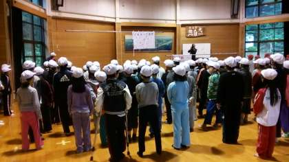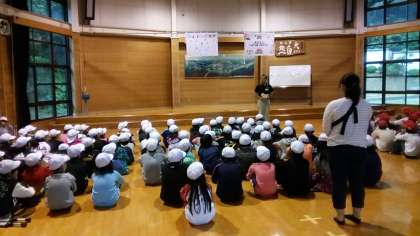 桃山小学校と一緒に朝のつどいをしています。