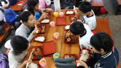 お弁当箱のふたを開けた瞬間にハンバーグを見つけて「おぅ」の歓声が上がりました。 そして、ゼリーが二個にまたまた大きな声が上がっていました♪