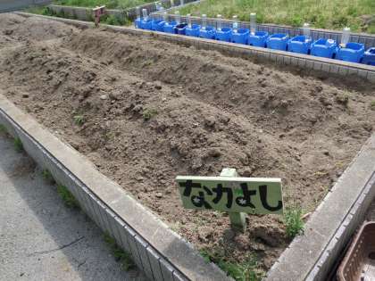 雑草が生えていた畑ですが、みんなで力を合わせ、整備をしました。草を抜き、土を耕し「暑いな〜」と言いながらも、よくがんばりました。