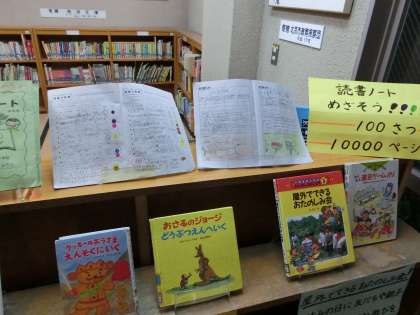 今年度は,100冊読書と10000ページ読書(高学年)の達成を目指しています。昨年度の目標達成した読書ノートもありますので,参考にしてがんばってください。