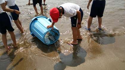 使ったばけつや杭、枠を海水で洗ってからいよいよ掘り始めます!!