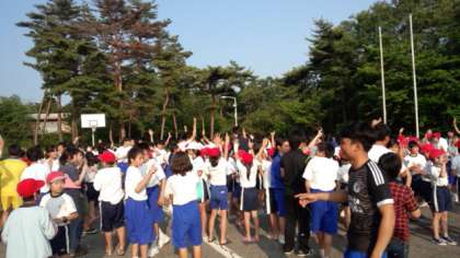 他の学校の人達と一緒に行いました。