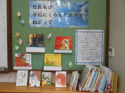 国語の教科書には,平和をテーマにした教材がたくさんあります。4年生では現在「一つの花」を学習しています。また,夏休みには,戦争を題材にした平和を願うドラマやアニメがたくさん放映されます。本でもぜひ読んでみてください。