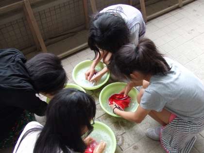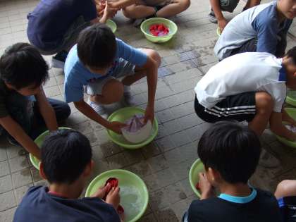 16日(木)に,家庭科の学習として手洗いに取り組みました。一人ひとつ洗面器を用意し,自分の赤白帽を丁寧に手洗いします。「洗剤の量はたったこれだけでいいの??」「ねじりしぼりが難しいなぁ。」などと言いながら一生懸命洗っていました。来週には上靴を持って帰りますので,この学習を生かして,ぜひ自分で洗ってほしいですね!