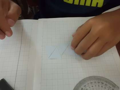 一人ひとり,自分の持っている三角形を操作して学習しています。
