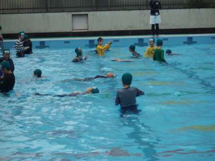 道具を使わずに,着ている服を使って浮く練習をしました。