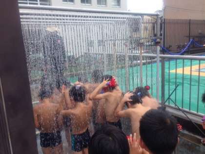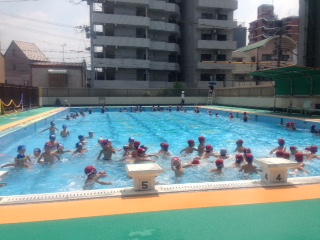汗をたくさんかきながら登校してきた子どもたちが気持ちよさそうにプールで泳いでいました。