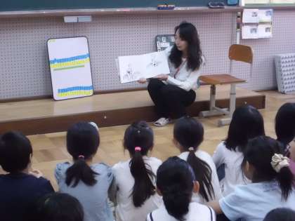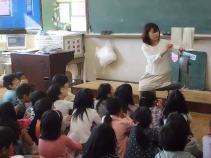 昨日に続き,今朝は2年生の教室で「おはなしかご」の皆さんによる読み聞かせの会がありました。