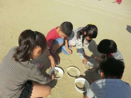 生活科の学習では土の学習でおだんごづくりをしています。どの土で作ることがより土同士がギュッと固まるよいおだんごになるのか,考え実験しています。色なのか,土の種類なのか,砂の粒の大きさなのか・・・・さて,子どもたちは答えに辿りつけるのでしょうか。