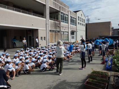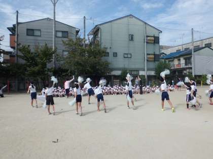 応援団が考えてきたエールをみんなに紹介し,声を出すタイミングや簡単な振付の練習しました。まだまだどの色も練習が必要ですが,本番に向けて,大きな声で応援できるようにがんばってほしいと思います。