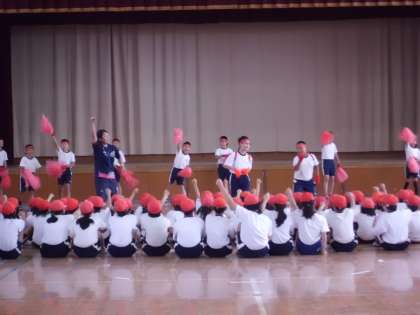 後半は,各色に分かれて応援の練習をしました。応援団の子どもたちはこれまで休み時間などを使い,一生懸命練習してきました。