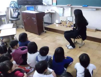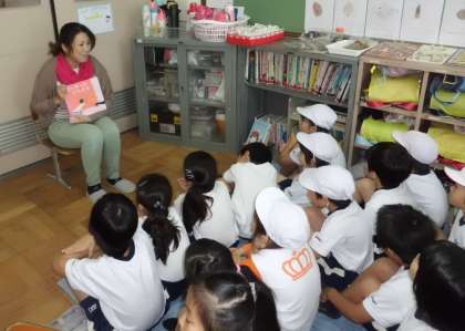 昨日に続き,本日は「おはなしかご」の皆さんが1年生に読み聞かせをして下さいました。今月のテーマは「音楽」ということで,お話に出てくる音やリズムを想像しながら楽しく聞かせていただきました。