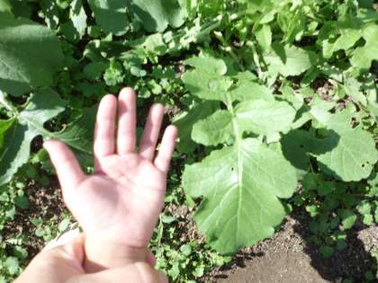 葉っぱが大きくなっている、○○さんの手とくらべてみよう