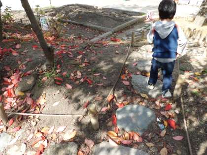 その後、朱一の杜へ。どんぐり・赤い葉っぱ・黄色い葉っぱ・オレンジ色の葉っぱ・・