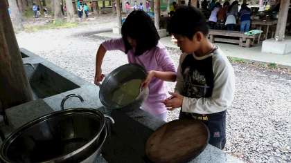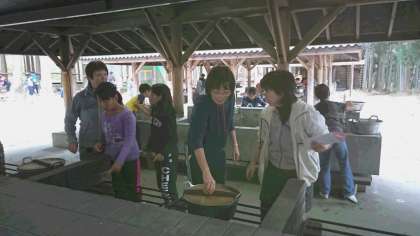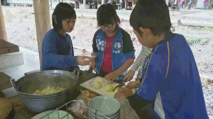野外炊事の様子です。