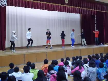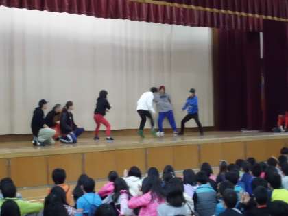 複雑な縄の動きに合わせ,軽やかに跳んでいる姿に子どもたちは大きな拍手をしていました。