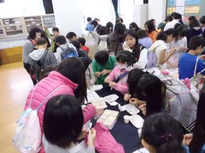 理科室では,ビーズづくりを楽しんでいました。好きなビーズを使ってオリジナルデザインを考え,ブレスレットなどをつくっていました。