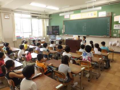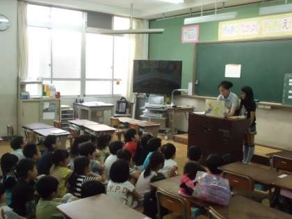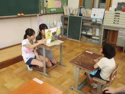 朝読書の時間に,図書委員が紙芝居をしている様子です。